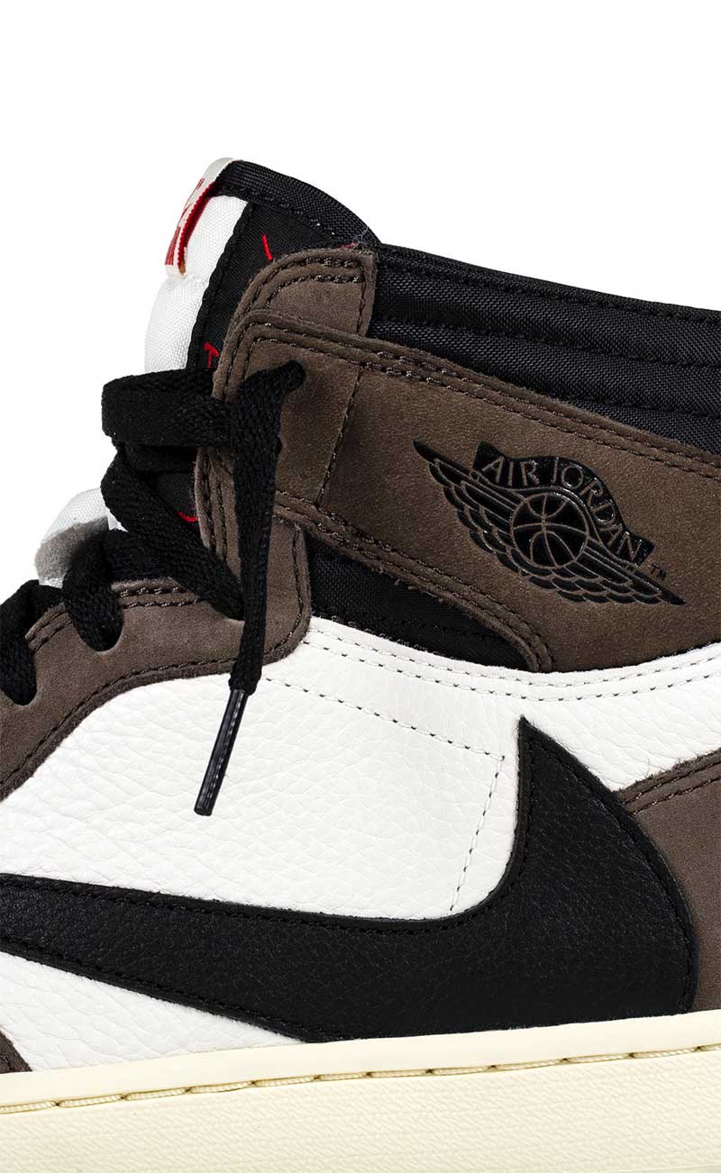 Jusque-là, Travis Scott avait été plutôt discret sur ses collaborations avec Jordan Brand. Sur les Air Jordan 4 ou 33, l’artiste s’était contenté de choisir les couleurs. Pour la Air Jordan 1, voilà qu’il s’attaque à la ligne de la chaussure.