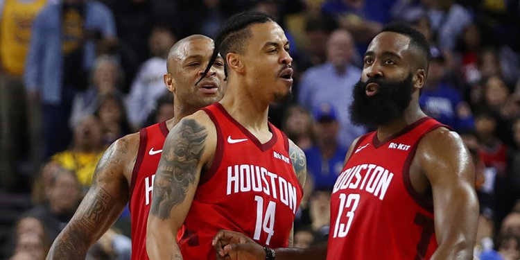 Pendant toute la première mi-temps, James Harden était en délicatesse avec son tir extérieur. Le MVP, les yeux toujours gorgés de sang mais avec une vision retrouvée, a toutefois plus d’un tour dans son sac. Dans l’ombre du festival d’Eric Gordon, James Harden a attaqué le cercle, avec une réussite mitigée certes, pour mettre la pression sur la défense de Golden State.
