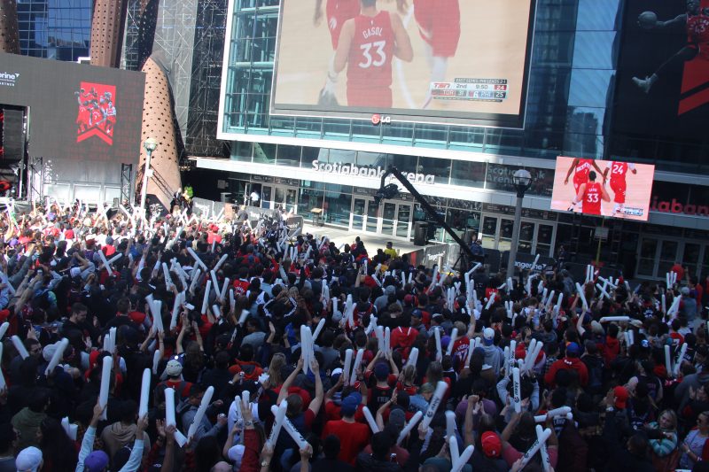 Ce dimanche, le thermomètre a passé le cap des 10°C. La semaine précédente, pour le Game 2, c’était plutôt 2° avec la dose de vent et un soupçon de pluie. Pas de quoi décourager ces fans qui avaient alors sorti le K-way pour suivre la rencontre malgré les conditions (si ces dernières sont trop mauvaises, la retransmission peut être annulée). C’est dire l’engouement pour les Raptors.