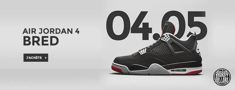Commandez sur B4B la légendaire Air Jordan 4 Bred, portée par Michael Jordan quand il a réussi The Shot.