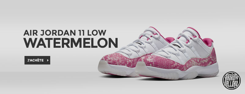 Commandez sur B4B la Air Jordan XI Low Watermelon célébrant le 23e anniversaire de la Air Jordan XI avec un modèle « White / Pink » rendant hommage aux coloris roses du passé dans un nouveau look tourné vers l’avenir.