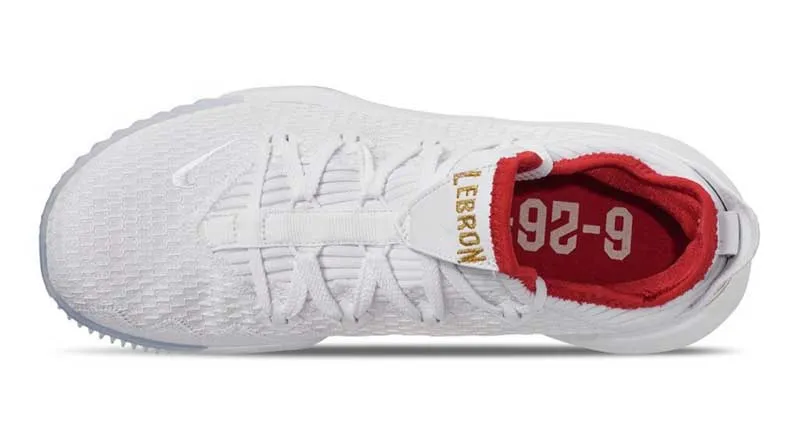 Le 24 mai, c'est donc une LeBron 16 Low “Draft Day” qui sera mise en vente. La paire est à la fois un hommage à la franchise et à la tenue du King le jour de son arrivée en NBA. James portait un costume totalement blanc lorsque son nom a été appelé. Il a ensuite brandi un maillot blanc, orné simplement de quelques liserés rouge et or.