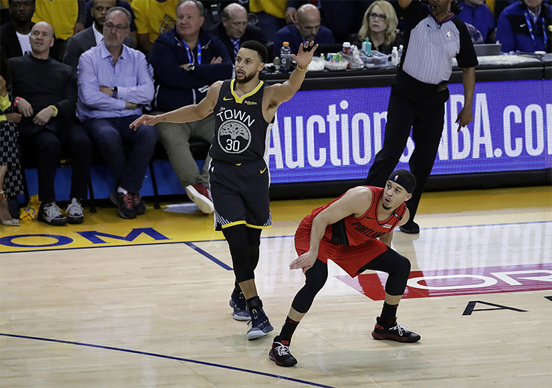 Comme on pouvait s’y attendre, les Blazers ont changé leur défense pour ne pas offrir autant de tirs ouverts à 3-points à Stephen Curry. Logiquement, l’adresse de loin du meneur a chuté (4/14) mais le double MVP a trouvé des solutions.
