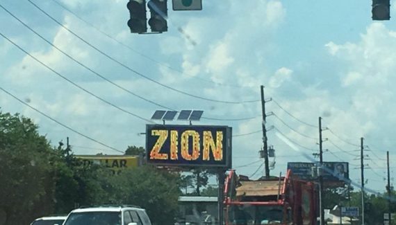 L’énorme « ZION » inscrit en or en lettres capitales n’est pas passé inaperçu ces derniers jours du côté d’Hammond, ville située entre Bâton-Rouge et la Nouvelle-Orléans, à l’intersection entre l’Old Covington Highway et l’Avenue Southwest Railroad.