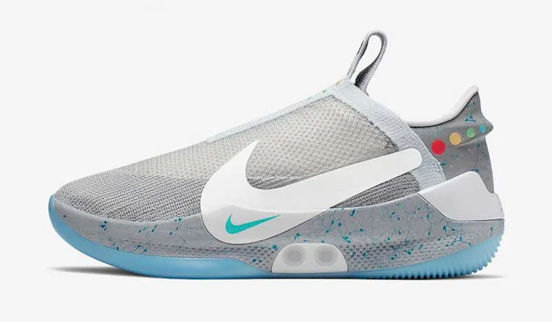 Il est presque étonnant de s'apercevoir que Nike a attendu aussi longtemps. Le 29 mai, l'Adapt BB et son laçage automatique seront disponibles dans un coloris baptisé “Wolf Grey”, dont les couleurs sont une référence évidente à la “Mag” de Retour vers le Futur.