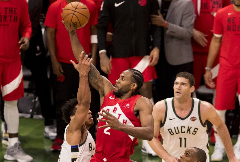 Évènement dans ce match : après six ratés, Khris iddleton marque enfin son premier panier. Fred VanVleet a lui rentré une 6e banderille, et frappe encore une fois pour donner l’avantage à son équipe. Brook Lopez marque avec la faute pour lui répondre, mais Kawhi Leonard imite son sixième homme pas une fois, mais deux : les choses sérieuses commencent ! Et Toronto prend le dessus, au sens propre : Pascal Siakam et Marc Gasol contrent Giannis Antetokounmpo et Brook Lopez, et les Raptors creusent l’écart sur un 10-0.