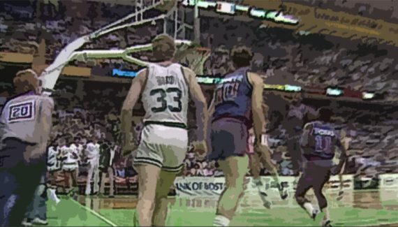 Alors qu’il peut prendre un temps-mort, Isiah Thomas effectue rapidement la remise en jeu sur Bill Laimbeer, seul à quelques mètres de lui… ou presque. “J’ai paniqué” avouera trente ans plus tard le meneur de jeu. “Bird a surgi de nulle part comme l’éclair, et c’était fini.”