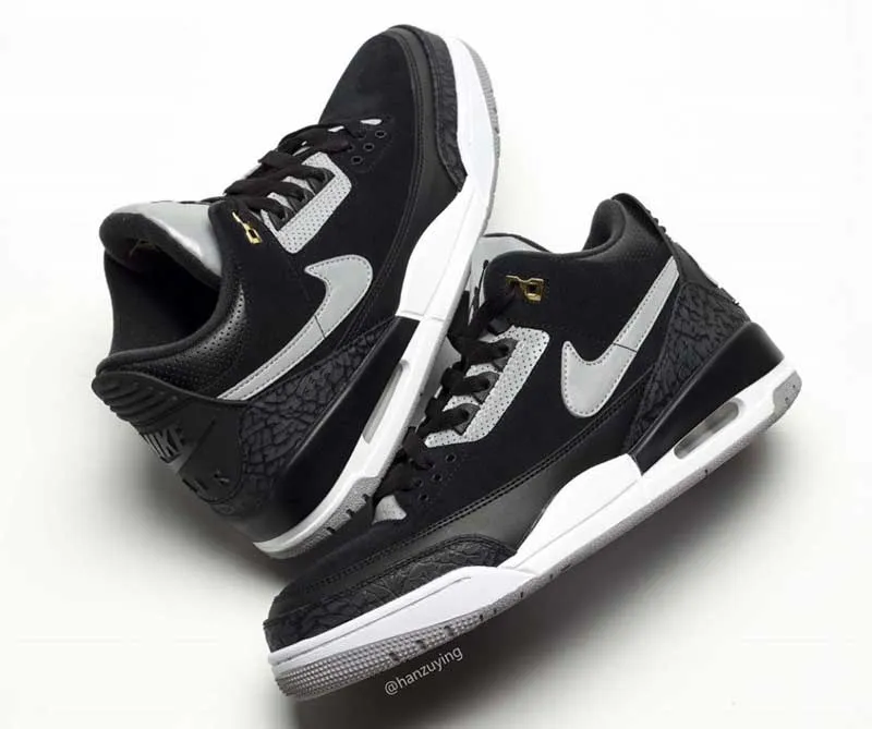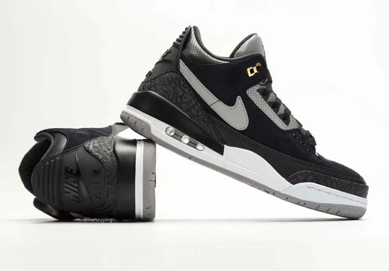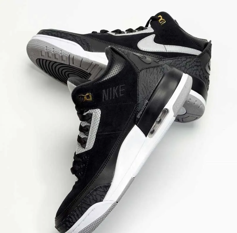 On va finir par ne plus la reconnaître. Avec une virgule sur le flanc et un imprimé éléphant ton-sur-ton, la Air Jordan 3 “Black Cement” change encore de look.