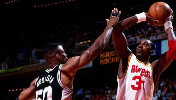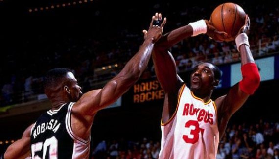 En finale de conférence Ouest face à San Antonio et David Robinson, MVP 1995, le pivot des Rockets va étaler toute sa palette offensive et réussir une démonstration de légende. Pendant six matche, il compile 35.3 points à 56% de réussite au shoot, 12.5 rebonds, 5 passes et 4.1 contres de moyenne. Seul sur sa planète.