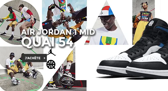 Commandez sur B4B la Air Jordan 1 Mid Quai 54 célébrant le tournoi de streetball qui se tient chaque année à Paris. La livraison est offerte.