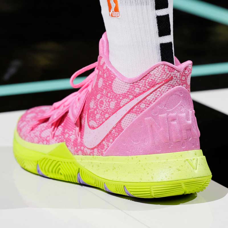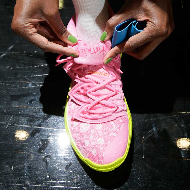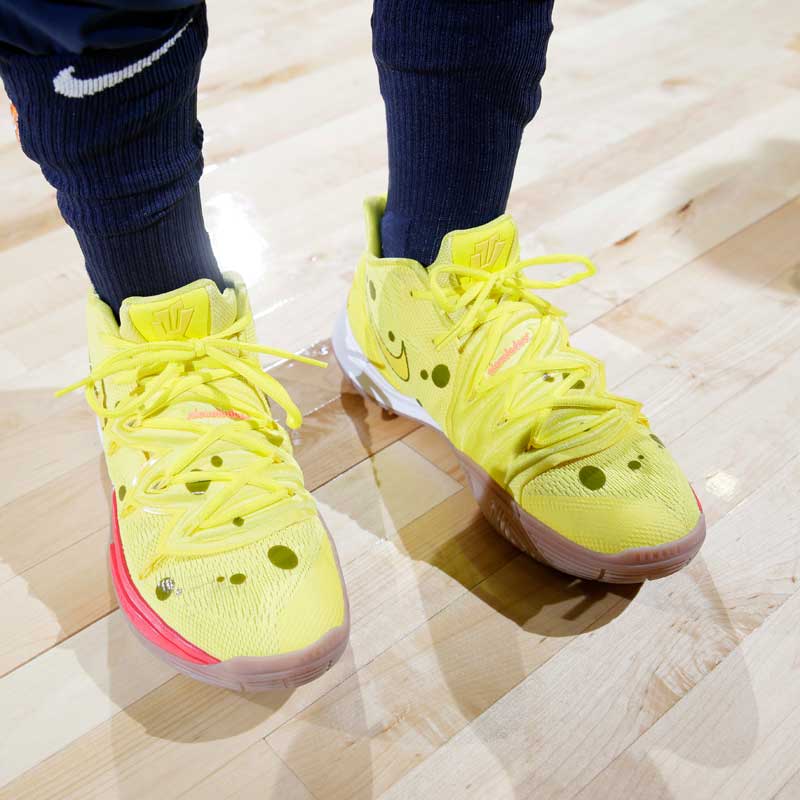 Kyrie Irving est en vacances, mais il n’est pas le seul à porter la Kyrie 5. Sur les parquets WNBA, Tina Charles et Odyssey Sims ont été les premières à chausser les deux coloris rendant hommage à Bob l’éponge.