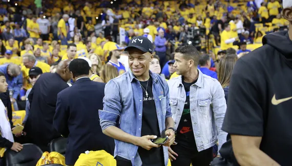 Après un crochet par Portland pour discuter projets avec LeBron James et rencontrer les dirigeants de son équipementier, Nike, Kylian Mbappé était assis au premier rang pour suivre le Game 6 entre les Warriors et les Raptors. Un baptême du feu royal puisqu'il s'agissait de son premier match NBA, dans une salle NBA. Difficile de faire mieux !