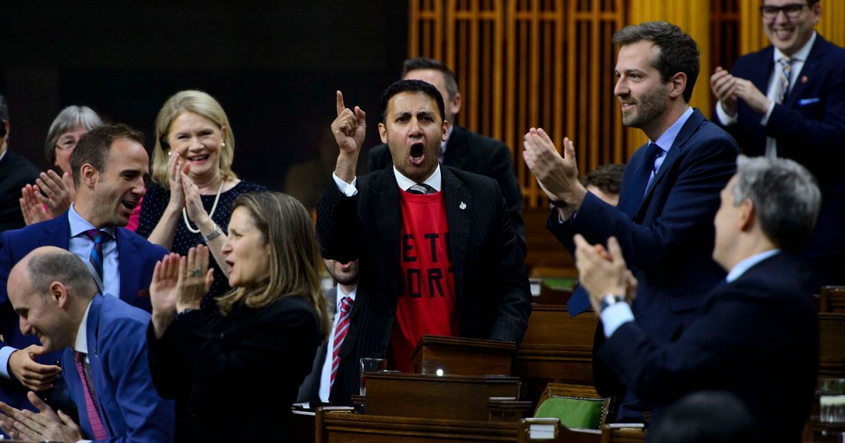 L’élu Arif Virani, t-shirt “We The North” sur la chemise, a ainsi tenu à célébrer les champions NBA.