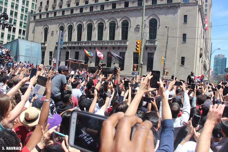 L’homme semble très fier de sa ville aujourd’hui : “C’est fou d’avoir une célébration aussi globale. On montre au monde entier à quel point la ville est multiculturelle”. 16 h, la fête, gâchée par une fusillade, touche à sa fin. Les joueurs ont terminé leurs discours et montent dans des voitures aux vitres teintées. Certains fans les reconnaissent dans les rues, se mettent à les poursuivre en courant. C’était une journée pas comme les autres à Toronto.
