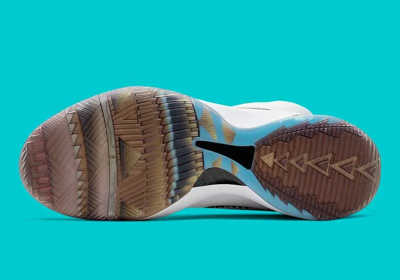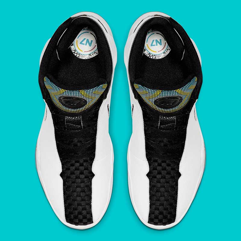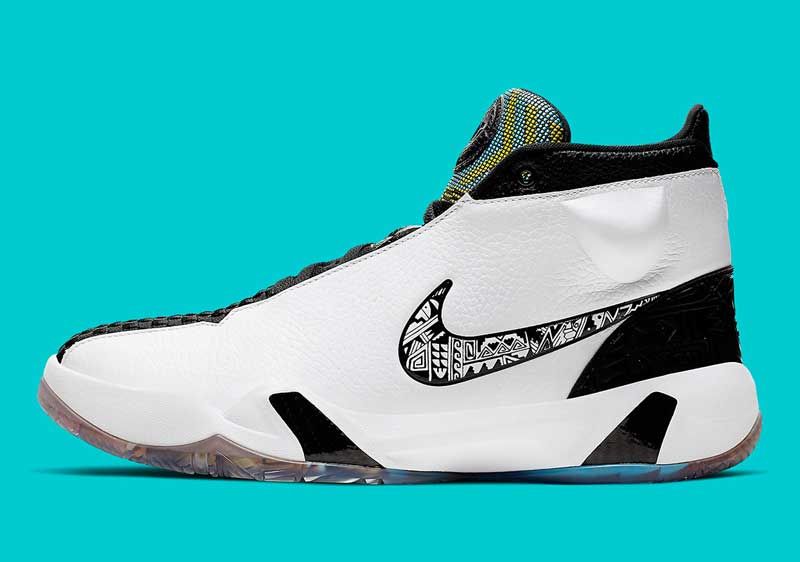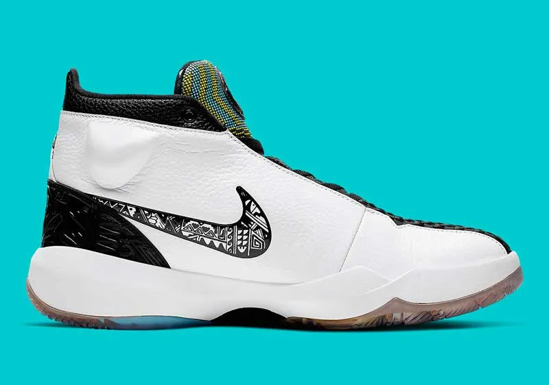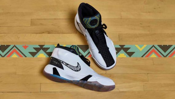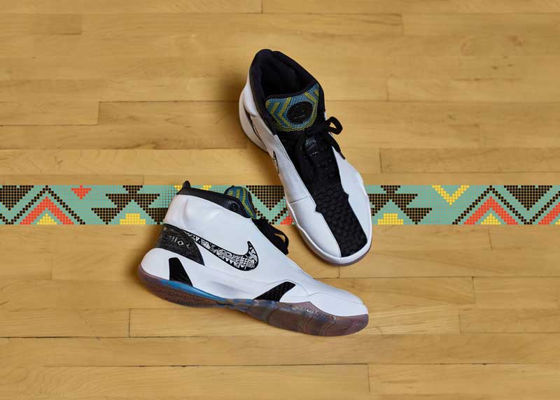 Cette chaussure de basket sort dans le cadre de la collection N7, qui rend hommage chaque année aux Amérindiens. Le modèle aurait été imaginé pour le “rez ball“, un style de jeu physique et rapide, avec beaucoup de pression en défense, pratiqué dans les tribus.