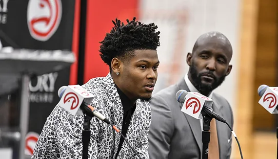 Présenté à la presse hier, le 10e choix de la Draft n’a pas retenu ses mots en direction de son nouveau coéquipier. Trae Young ? «Un joueur phénoménal, phénoménal. Le simple fait de parler de lui me fait plaisir. Son jeu de passe est l’un de ses plus grands atouts. Je suis évidemment pressé de jouer avec lui et d’apprendre de lui.»