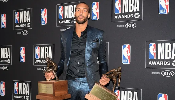 Vainqueur en 2018, Rudy Gobert conserve son trophée de meilleur défenseur de l'année, et il est le premier joueur depuis Kawhi Leonard en 2015 à réaliser le doublé. Le Français, auteur de sa meilleur saison en carrière, devance Giannis Antetokounmpo et Paul George dans les votes.
