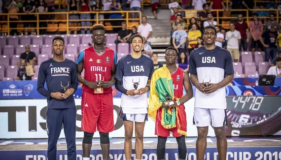 Un joli lot de consolation après la courte défaite en demi-finale face au surprenant Mali (76-73), que seul Team USA est parvenue à stopper (80-69). Futur coéquipier de Joël Ayayi à l'Université de Gonzaga, le Malien Oumar Ballo le rejoint dans le cinq majeur du tournoi avec son compatriote Siriman Kanouté, ainsi que les Américains Tyrese Haliburton et Reginald Perry, élu MVP de la compétition.