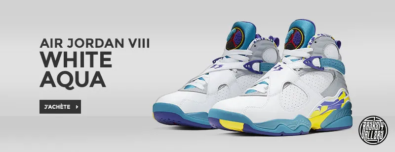 Commandez sur B4B la Air Jordan 8 White Aqua réédité pour la première fois après sa première apparition parmi les premiers coloris OG dédiés à la femme en 2007