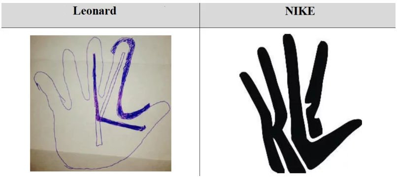 Dans la plainte de l’équipementier, on peut lire que la marque ne conteste pas la propriété intellectuelle de Leonard dans le « brouillon » et le fait que Leonard a partagé son concept de logo avec des représentants de la société. Mais Nike souligne que ses graphistes ont créé un logo distinct, sensiblement différent du design de Leonard – et plus commercialisable que celui-ci. On constate d’ailleurs que les “K, L et 2” forment les cinq doigts de la main chez Nike, alors que sur le croquis de Leonard, ce n’est pas le cas.