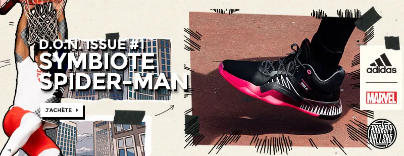 Commandez sur B4B la adidas D.O.N. Issue #1 Symbiote Spider-Man inspirée des premiers croquis du costume de Peter Parker.