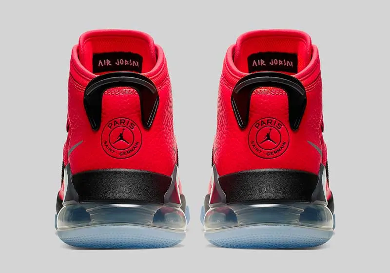 Beaucoup moins discrète, la Jordan Mars 270 s'habillera de rouge le 27 juillet. Une couleur qui devrait correspondre au nouveau maillot extérieur des footballeurs parisiens. Annoncée à 175 dollars, cette chaussure au style très 90's dispose d'une imposante bulle d'air au talon et d'une semelle translucide. Encore une fois, on retrouve un logo au talon et une étiquette “Paris” à l'intérieur du pied.