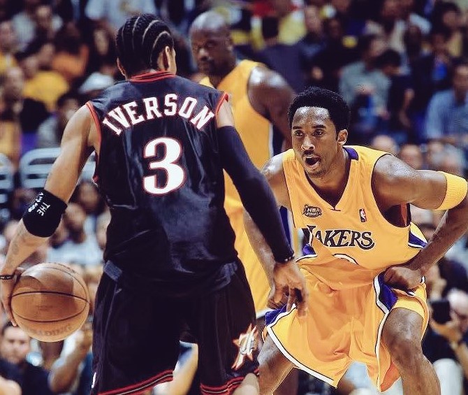 Bien que l’on soit en juin et qu’il se trouve dans un vestiaire embué, Kobe porte une veste en cuir multicolore, un collector, avec un écusson pour chacun des innombrables titres de la franchise californienne. Elle indique la place qui est la sienne parmi les nombreuses légendes de cette équipe, à tout juste 22 ans. Bryant a toutes les raisons de dodeliner de la tête, de mâcher ostensiblement son chewing-gum, de rire et de fêter ce moment suprême. Surtout dans sa ville natale de Philadelphie. Il vient tout juste d’offrir aux Lakers un parcours incroyable et sans précédent de 15 victoires pour 1 défaite dans les playoffs, menant ainsi la franchise de L.A. à la conquête d’un second titre de champion consécutif. Le tout couronné par une victoire 4-1 en Finales contre les Philadelphie 76ers de sa bête noire, Allen Iverson. Son mentor, l’ancienne légende des Lakers Jerry West, objet de tant d’affection et de vénération de la part des fans de basket, n’avait gagné qu’un seul et unique titre dans une carrière longue de quatorze saisons. Et pleine de douleurs et de déceptions. Le jeune Kobe Bryant, lui, en avait déjà gagné deux.