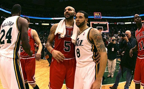 – Auteur d’une interception décisive à 1 minute de la fin, et surtout de 29 points, Derrick Rose permet aux anciens Jazzmen de quitter Salt Lake City en vainqueurs (91-86). Ronnie Brewer, également auteur d’une grosse interception à 8 secondes de la fin, et Kyle Korver n’ont pas été tendres avec leur ancienne formation. Quant à Carlos Boozer, plus hué qu’applaudi, il a souffert face au tandem Jefferson-Millsap.