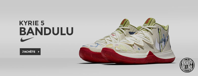 Commandez sur Basket4Ballers.com la Nike Kyrie 5 élaborée en collaboration avec la marque de vêtements Bandulu spécialiste de l’upcycling.