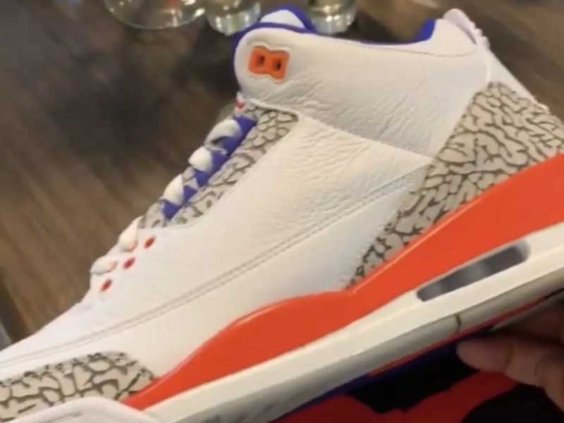 Le 8 avril 1988, les Bulls se sont imposés au Madison Square Garden, grâce notamment à 40 points de Michael Jordan. C’est à ce match, dont la date apparaît à l’intérieur de la languette, que Jordan Brand a pensé au moment d’habiller la Air Jordan 3 avec les couleurs des Knicks. Normal, c’est cette chaussure qu’il portait ce soir-là.