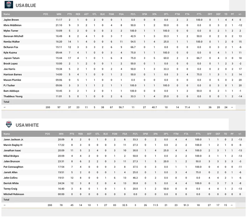 Le “training camp” de Team USA à Las Vegas s'est terminé par le traditionnel affrontement entre la “Blue Team”, qui correspond à la pré-sélection, et la “White Team”, composée de joueurs de la “Select Team”.