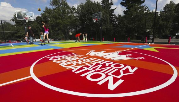 L’école “I Promise”, lancée par LeBron James à Akron pour aider les enfants issus de milieux défavorisés, est désormais dotée d’un terrain de basket flambant neuf… et très coloré.