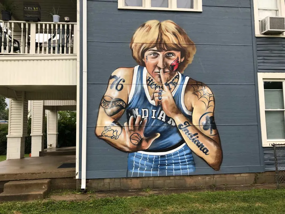Lorsqu'on a demandé à l'artiste graffeuse Jules Muck de dessiner quelque chose sur un bâtiment d'habitation d'Indianapolis, cette dernière explique qu'on lui a conseillé de représenter Larry Bird, héros local.