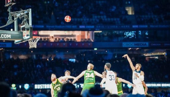 Devant 50 000 spectateurs, un record pour un match de basket en Australie, Patty Mills (19 pts) donne le ton d’entrée avec un contre sur Kemba Walker, puis en s’arrachant pour sauver le ballon qui file en touche. Jaylen Brown lui répond en le bâchant à son tour et on assiste à un vrai round d’observation où seuls Donovan Mitchell puis Myles Turner trouvent le filet (4-0). Joe Harris les imite sur un drive, et l’Australie est déjà distancée (6-0).