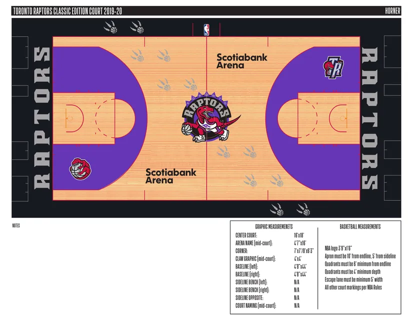 Les Raptors ont eux aussi visiblement décidé de faire dans le rétro avec un parquet “vintage” et “flashy”.