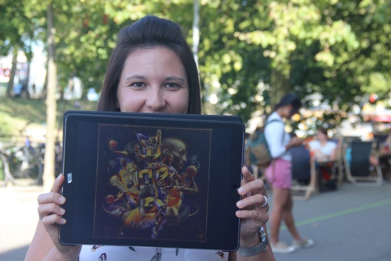 Et cela malgré cette « jungle » numérique où tout un chacun peut s’approprier le travail d’un autre. “J’ai arrêté de me battre avec ça”, lâche-t-elle tout en surfant et montrant un site chinois de vente où ses visuels ont été repris, sans son accord, pour décorer… des coques de téléphone. “Même si les gens doivent comprendre que derrière ces visuels, il y a du temps et du travail”. Exemple avec l’une de ses créations favorites, une carte blanche commandée par la ligue à l’occasion de la retraite de Kobe Bryant, qui lui avait demandé 15 heures de travail.
