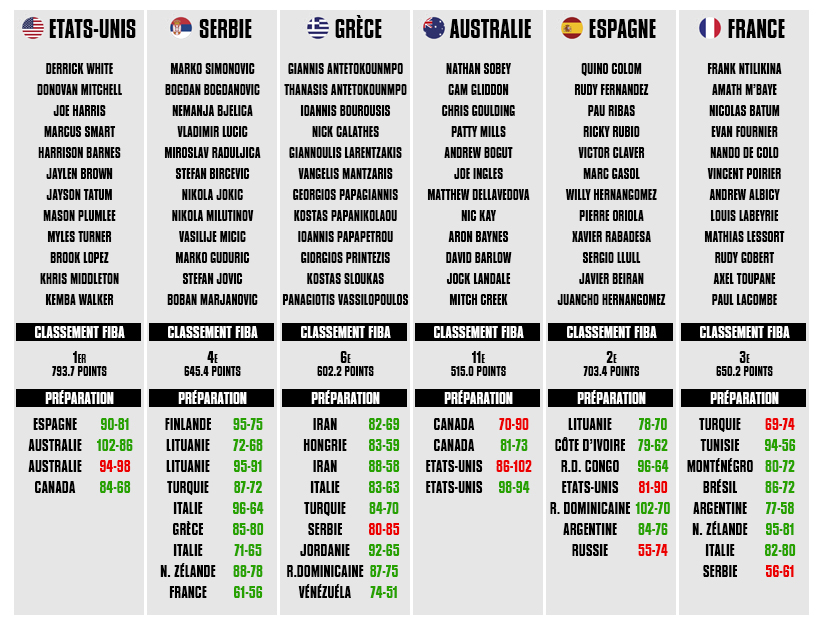 Tout du moins pour les joueurs américains qui ne se passionnent pas pour cette compétition, au point de collectionner les forfaits. Une vingtaine de défections qui nuisent au spectacle, mais relancent le suspense avec une équipe de Team USA vulnérable et pas sûre de son basket. La Serbie a ainsi les atouts pour les faire tomber, tandis que la Grèce, l’Australie, l’Espagne ou encore la France sont des outsiders de qualité.