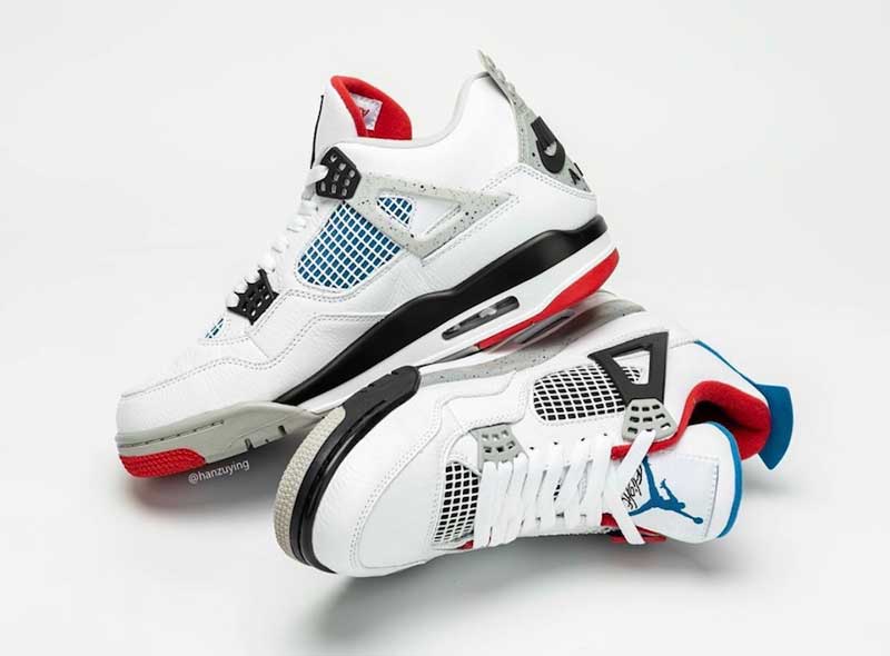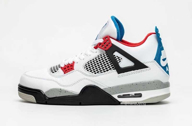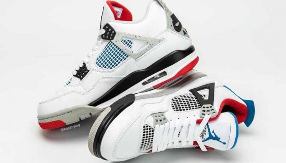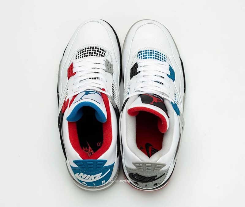 Les plus célèbres coloris de la Air Jordan 4 se retrouvent sur une base blanche. Ce sont les détails, la languette ou la doublure qui mélangent tout. Évidemment, pour satisfaire les puristes, c’est le logo “Nike Air” de l’originale qui a été choisi pour le talon.