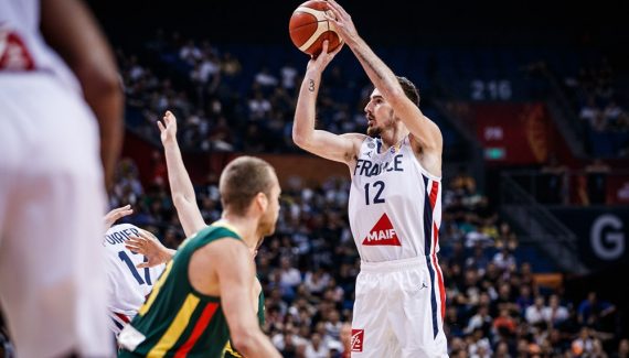 Aucun round d’observation côté Français avec un Evan Fournier toujours aussi agressif, et un duo Batum-Gobert qui verrouille l’accès au cercle, et s’en va dunker de l’autre côté du terrain (11-6). Côté Lituanie, Jonas Valanciunas impose sa puissance, mais il y a du répondant en face et la défense des Bleus impose son tempo. Frank Ntilikina laisse sa place à Andrew Albicy, Nando De Colo entre aussi en jeu, mais le rythme ne faiblit pas. Le futur meneur de Fenerbahce trouve Batum qui régale avec un fadeaway. La France s’échappe (15-8) et Gobert provoque la deuxième faute de Domantas Sabonis. Il n’y a rien à jeter dans ce premier quart-temps et le tandem Batum-M’Baye distribue les bâches. Après douze minutes, la France est devant (26-14).