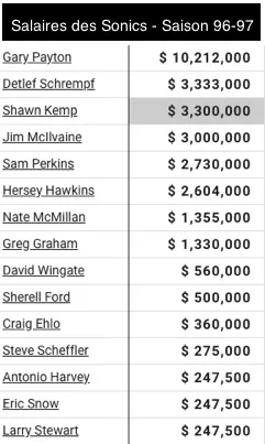Il faut dire que la direction de Seattle était confrontée à beaucoup de questions après cette escapade en finale. Les Sonics comptaient alors de nombreux joueurs en fin de contrat, dont Gary Payton en premier lieu. Le meneur sera récompensé d’un gros contrat à 85 millions de dollars sur 7 ans, un « no brainer »…