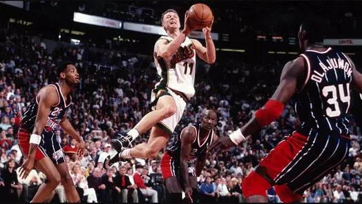 L’apprentissage se fait évidemment dans la douleur pour les jeunes Sonics. Pas loin d’eux dans la conférence Ouest, sur les bords du Lac Salé, le duo Stockton – Malone dame régulièrement le pion à ses cadets des Sonics. Une source intarissable de motivation.