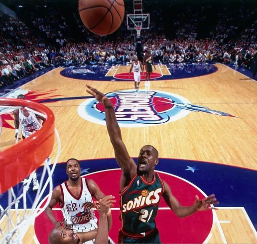 Voilà un résumé plutôt consistant de la période Sonics… à la différence près, mon cher Gary, que Seattle n’a jamais pu gagner gros. Défaits en Finale en 1996, les Sonics ne retrouveront jamais les sommets. Sans la moindre bague au doigt, cette équipe des Sonics peut toujours causer…