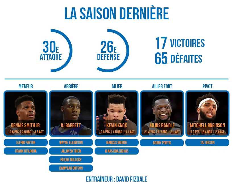 Auteurs d’un des plus mauvais exercices – et de la pire série de défaites (18) – de leur histoire, les Knicks ont clairement «tanké» l’an passé pour récupérer un bon choix de Draft, tout en manoeuvrant pour récupérer la flexibilité nécessaire à la signature de deux grosses superstars.