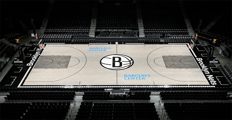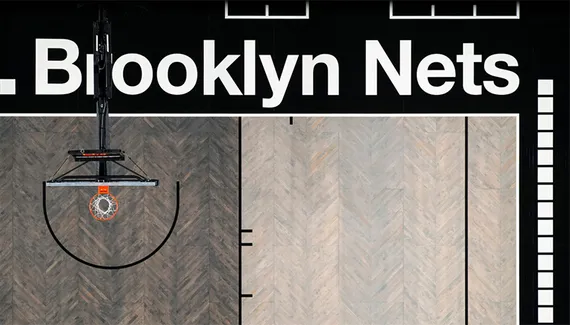 Les Nets ont par ailleurs remis leur clin d'oeil au métro, en reprenant la police “Helvetica” utilisée par la Metropolitan Transportation Authority sur ses pancartes, afin d'écrire le nom de la franchise des deux côtés du parquet. Tout en ajoutant une ligne blanche sous forme de mosaïque qui fait le tour du terrain.
