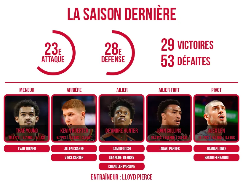 On leur promettait l’enfer et une place de bons derniers de la ligue. La saison passée, les Hawks ont finalement suivi notre scénario du « si tout va bien ». Évidemment qu’Atlanta est restée loin des playoffs mais cette première campagne de Lloyd Pierce a été très encourageante.