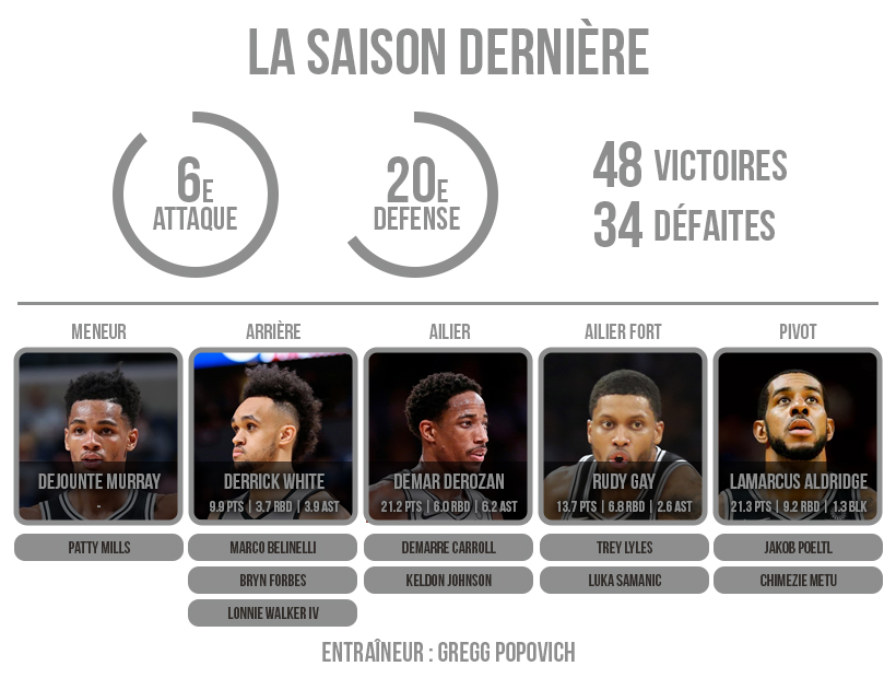 La solidité des Spurs a été mise à rude épreuve ces douze derniers mois avec les départs successifs de Kawhi Leonard, Manu Ginobili et Tony Parker, auxquels on peut ajouter la blessure pour un an du meneur de jeu titulaire Dejounte Murray.