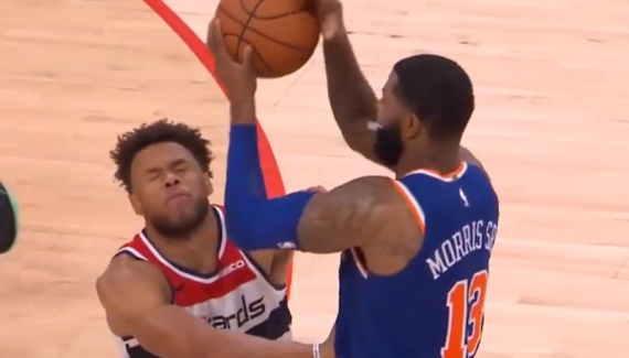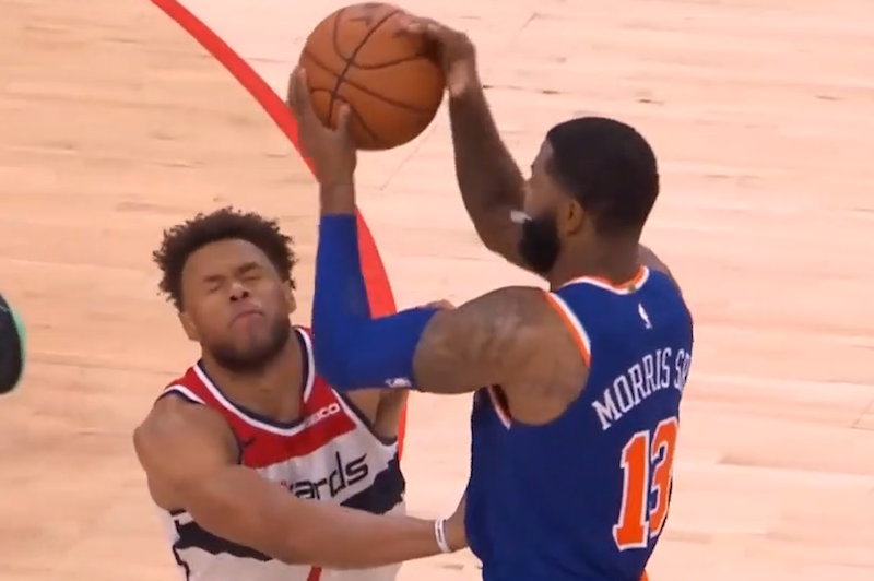 Il voulait “retrouver l’identité des anciens Knicks”. Cette nuit à Washington, Marcus Morris s’y est pris à sa façon pour incarner cet esprit d’antan. Sur la première possession de la seconde période, on voit la recrue new-yorkaise échanger quelques mots avec son vis-à-vis Justin Anderson. Une fois le ballon en main, il veut se créer de l’espace sur son défenseur et lui assène… un coup de ballon sur la tête.