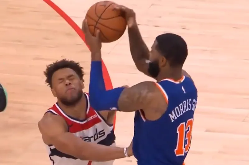 Il voulait “retrouver l’identité des anciens Knicks”. Cette nuit à Washington, Marcus Morris s'y est pris à sa façon pour incarner cet esprit d'antan. Sur la première possession de la seconde période, on voit la recrue new-yorkaise échanger quelques mots avec son vis-à-vis Justin Anderson. Une fois le ballon en main, il veut se créer de l'espace sur son défenseur et lui assène… un coup de ballon sur la tête.