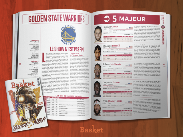 Réalisé en collaboration avec Basket USA, le guide donne également pour chaque franchise “L’œil de BasketUSA”, un angle décalé, inside, pour être toujours plus au cœur de la ligue américaine.