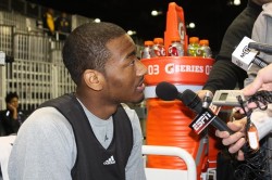 John Wall sait danser, il est moins convaincant face à la presse. Vous me direz, certaines questions ne donnent pas vraiment envie de forcer sa nature. Mais le n°1 de la draft 2010 n’a pas non plus fait beaucoup d’efforts: sourires un brin forcés, réponses minimalistes. Sa passe pour Blake Griffin pour LE alley-oop de la soirée fera oublier cette sortie médiatique ratée. |